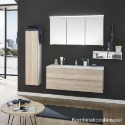 Puris Kao Line Waschtischkombination 126 Cm Mit Keramik-Doppelwaschtisch, 4 Auszügen, Stangengriff