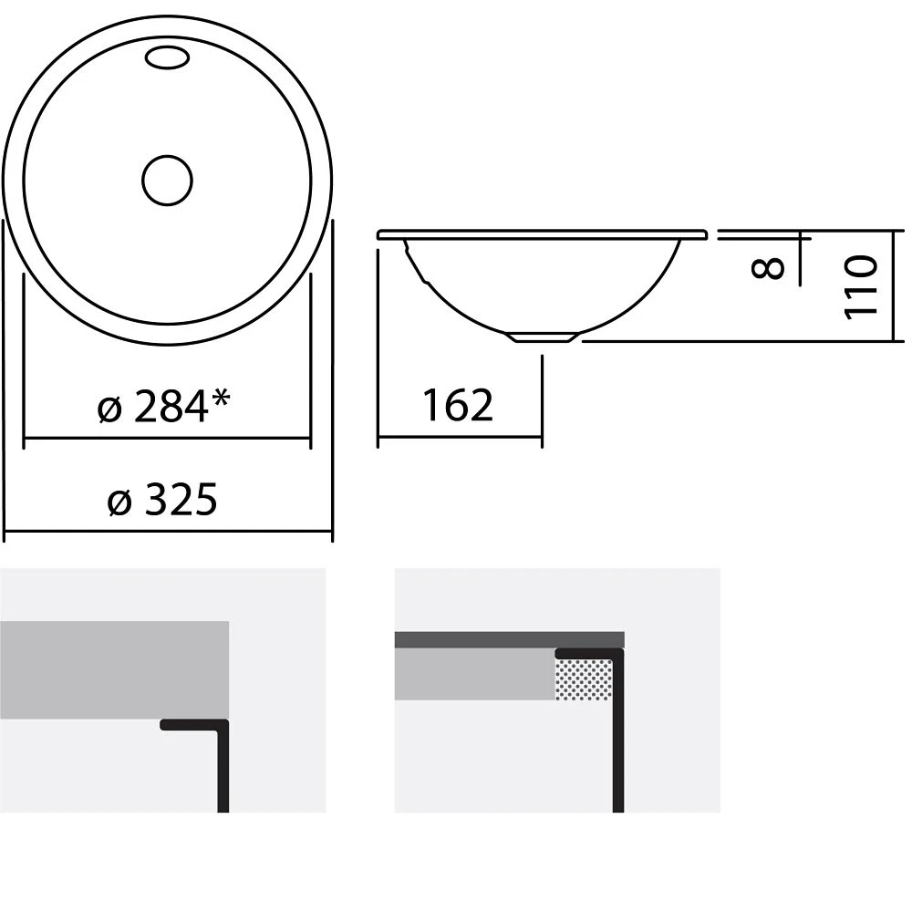 Alape Unterbaubecken UB.K325 mit 28,4 cm Ø