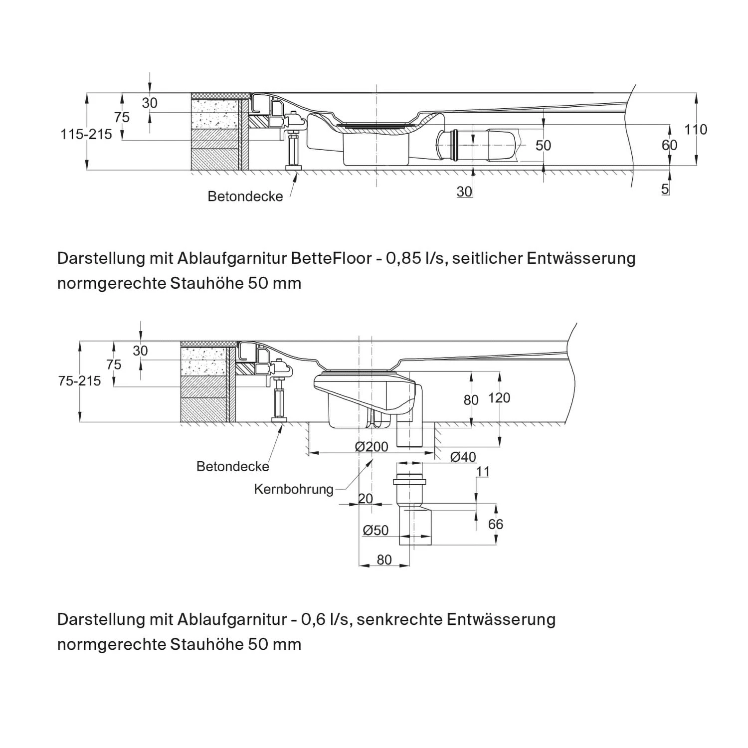 Bette BETTEFLOOR SIDE Duschfläche 120 x 90 cm