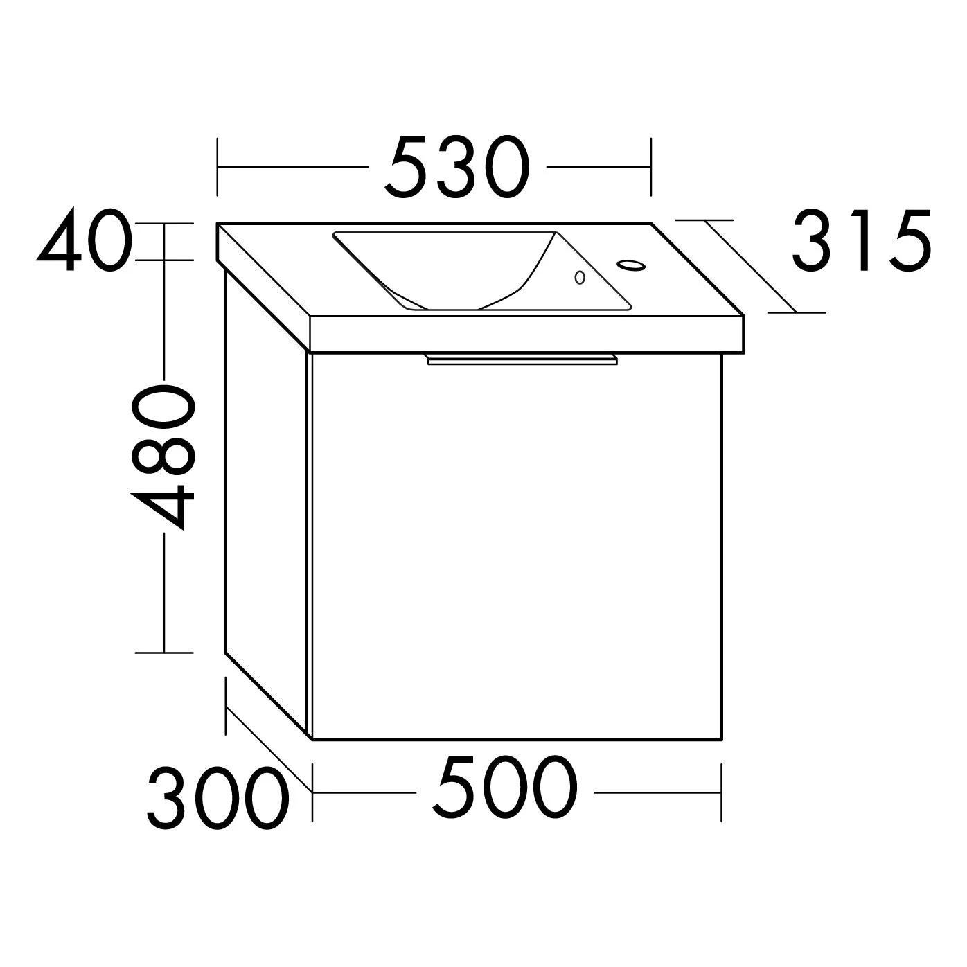 burgbad Eqio Waschtischkombination mit Keramik-Waschtisch 53 cm, mit Stangengriff P95