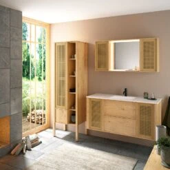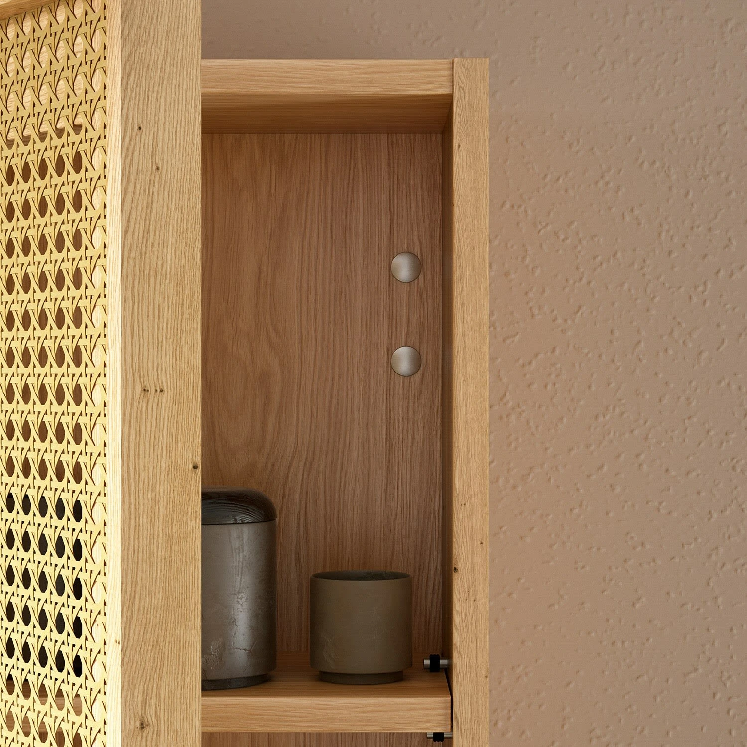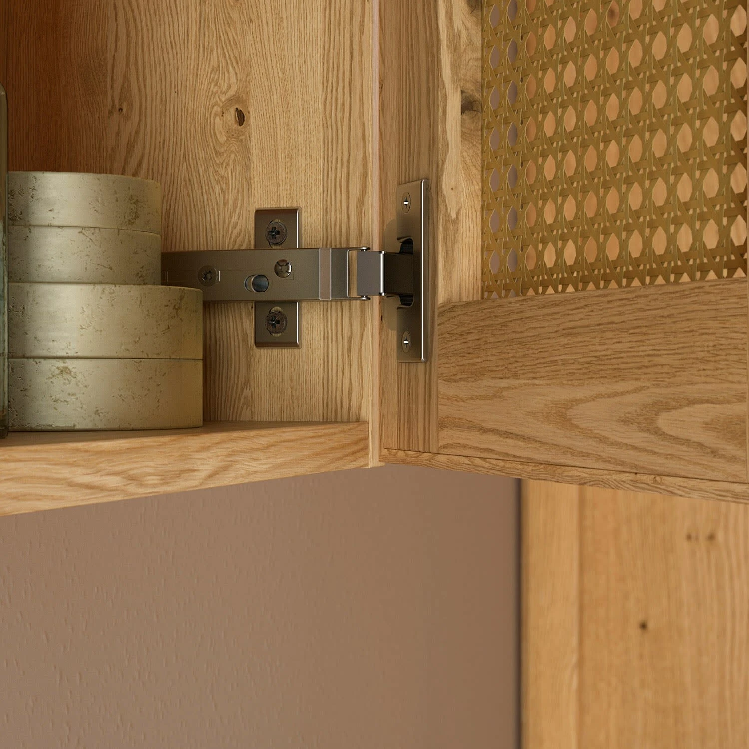 - Rattan-Design sorgt für eine warme Optik und natürliche Haptik (Wiener Geflecht)
