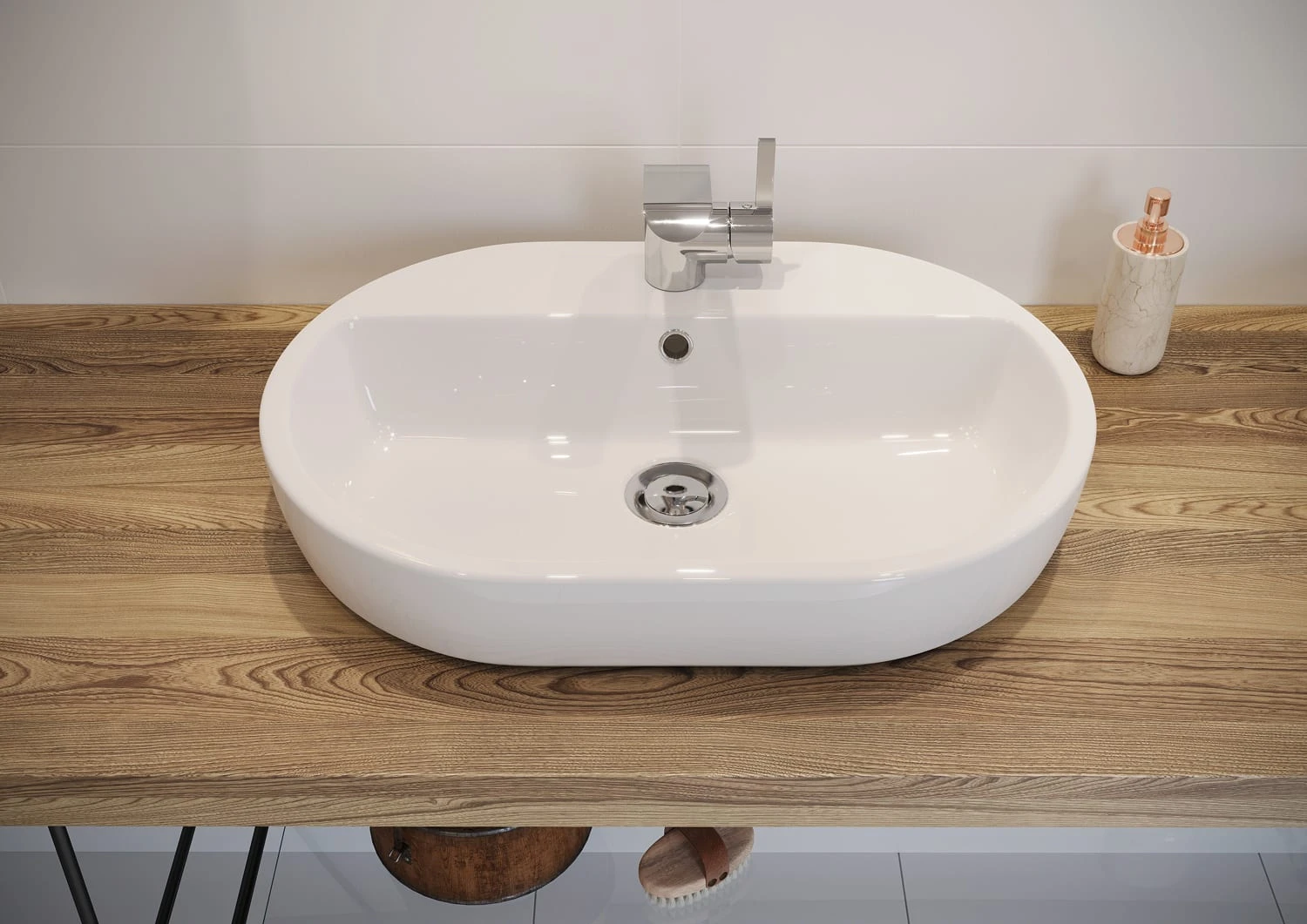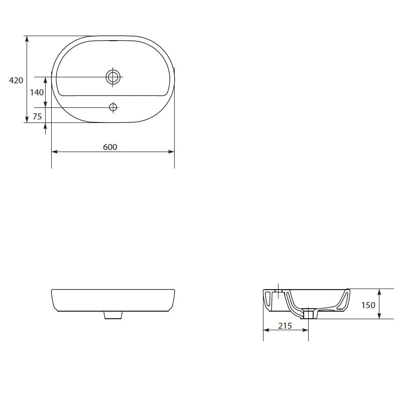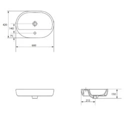 Cersanit Caspia Aufsatz-Waschtisch 60 cm oval mit 1 Hahnloch und Überlauf
