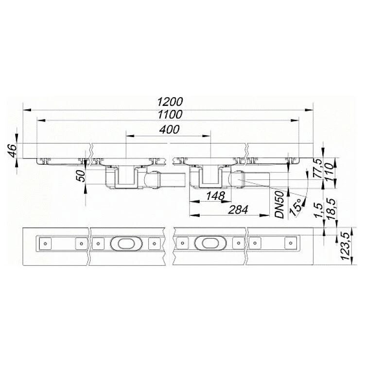 Dallmer CeraLine W Duo Duschrinne 110 cm, DN 50