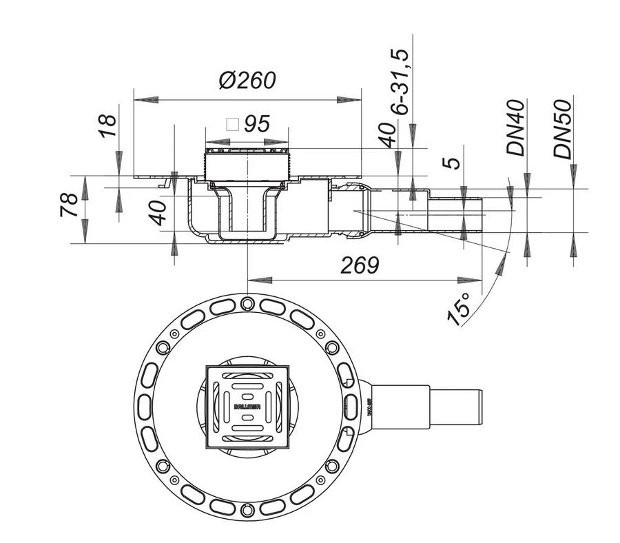 - Geruchverschluss mit 4 cm Sperrwasserhöhe