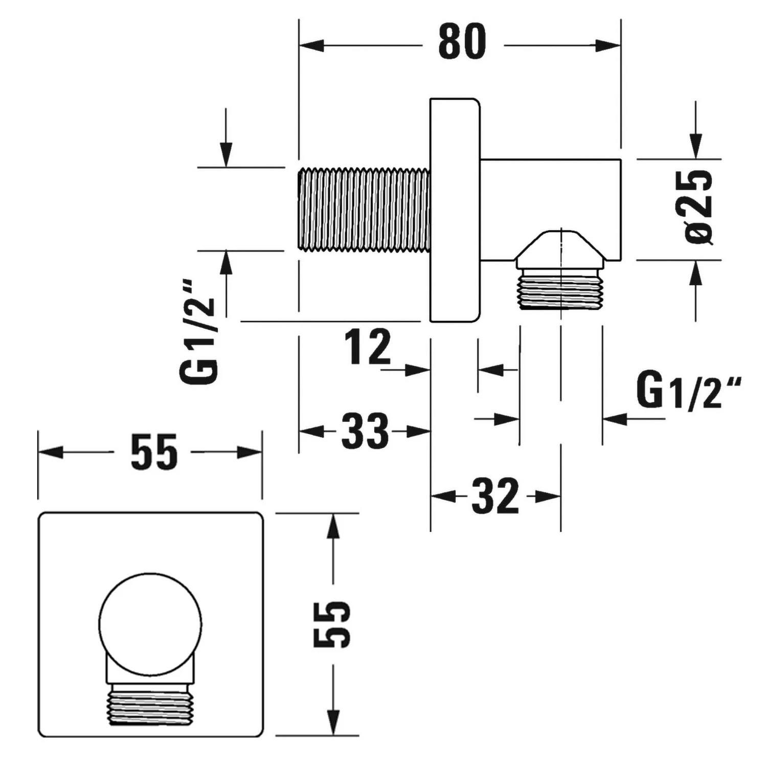 Duravit Wandanschlussbogen ohne Brausehalter mit eckiger Rosette