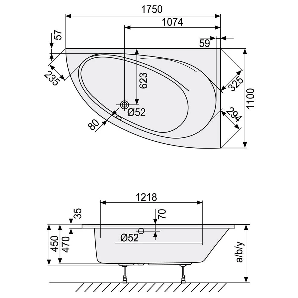 DUSCHOLUX Malaga 471 Raumsparwanne asymmetrisch rechts