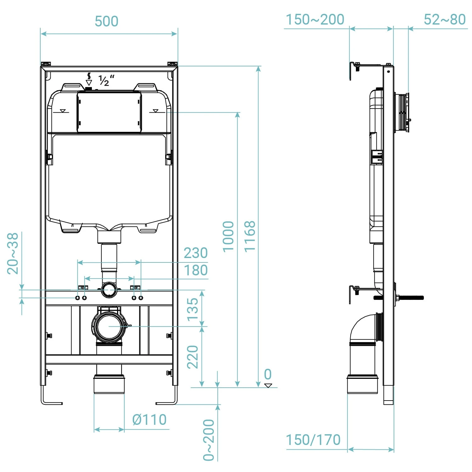 EasyUp Komplettset Basic mit Vorwandelement SlimFix SF100 und Betätigungsplatte SF112