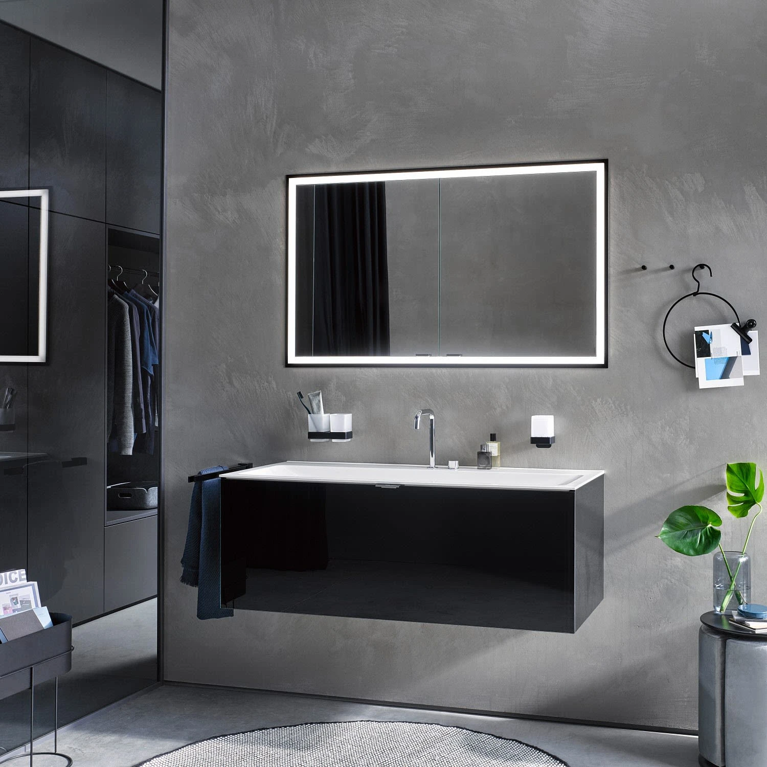 Emco prime black LED-Lichtspiegelschrank 80 cm, 2 Türen, Unterputzmodell