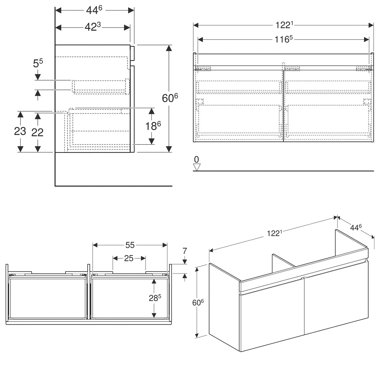 Geberit Renova Plan Unterschrank für Doppelwaschtisch 130 cm, mit 2 Schubladen und 2 Innenschubladen