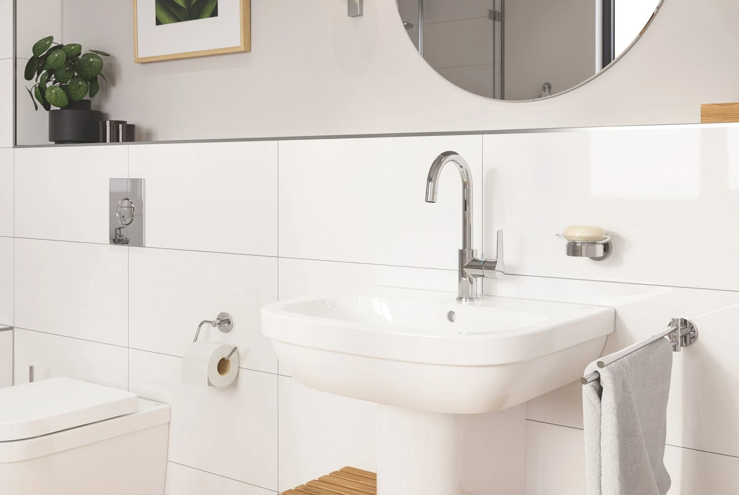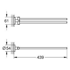 Der GROHE Start Handtuchhalter ist ein modernes und zugleich praktisches Accessoire, das sich sehr schnell montieren lĂ€sst. Beste Materialien und schwenkbare Stangen machen diesen eleganten Handtuchhalter zur idealen Wahl fĂŒr Badezimmer verschiedenster Stile. Durch die verdeckte Befestigung und die schöne OberflĂ€che wirkt er ĂŒberaus hochwertig. Die langlebige und leicht zu reinigende GROHE Long-Life Shine Beschichtung bewahrt dabei ihren Glanz ĂŒber viele Jahre. Schrauben und DĂŒbel fĂŒr die Montage werden mitgeliefert. GROHE Start Zubehör ist eine echte Aufwertung fĂŒr Ihr Badezimmer im Handumdrehen.