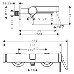 hansgrohe Finoris Einhebel-Wannenarmatur Aufputz