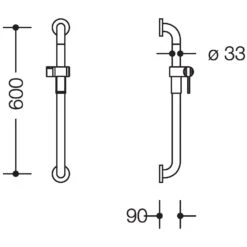 - an den Enden im rechten Winkel abgebogene senkrechte Stange mit Stahl-Befestigungsrosetten und Brausehalter