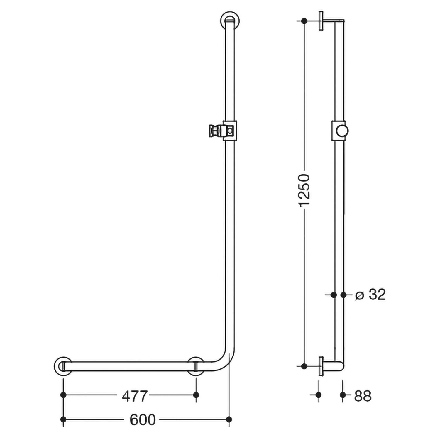 HEWI System 900 Winkelgriff mit Brausehalter 60 cm, links
