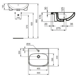 | Ausführung | Halbeinbauwaschtisch |