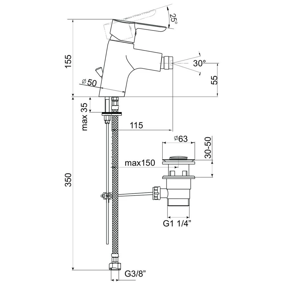 Kaja Magis Einhand-Bidetarmatur mit Zugknopf-Ablaufgarnitur