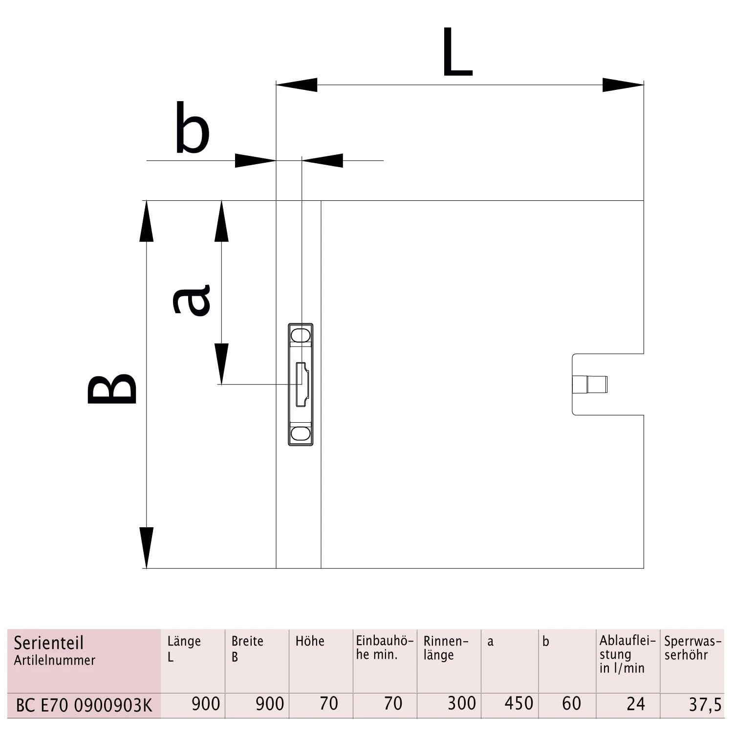 Kermi LINE Komplettboard E70 90 x 90 cm, Rinnenlänge 30 cm