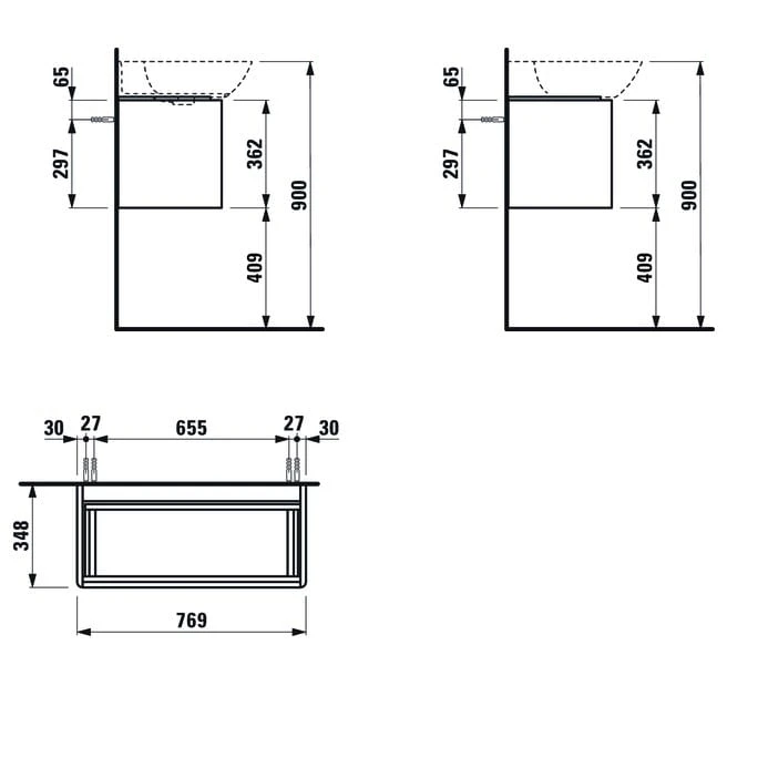 LAUFEN BASE für INO Waschtischunterbau 77 x 35 cm, 1 Schublade, Griff eloxiert