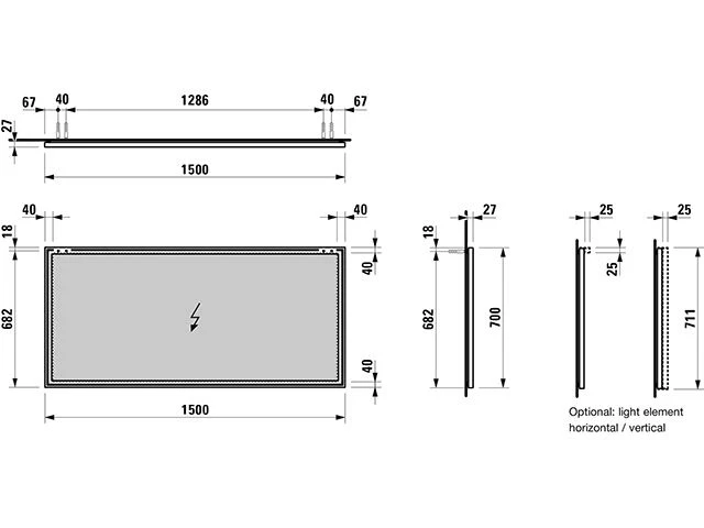 LAUFEN Frame 25 Spiegel LED-Leuchte 150 cm waagerecht, ohne Schalter