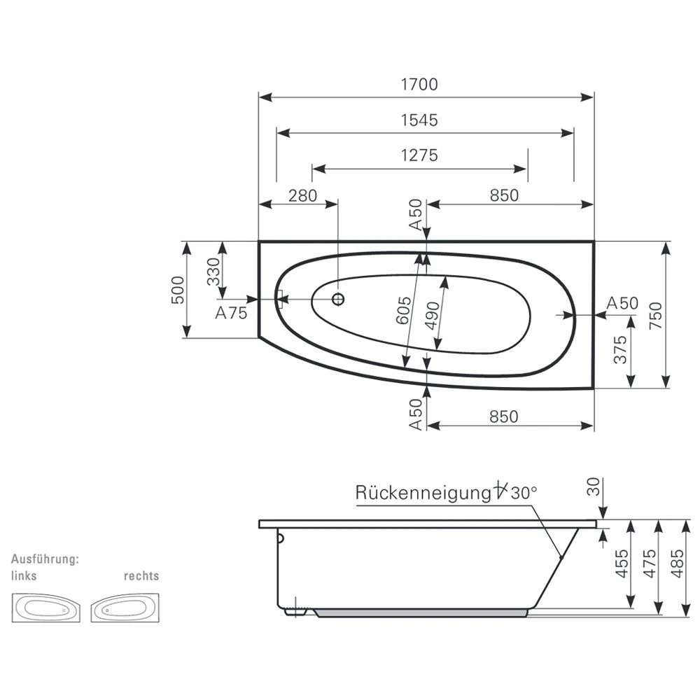 Mauersberger Raumsparbadewanne Bombax 170 rechts