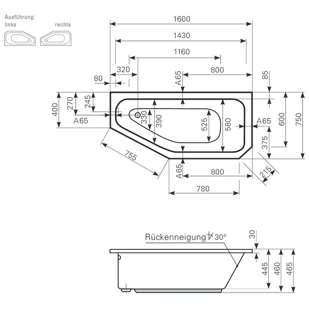 Mauersberger Raumsparbadewanne Bursea 160 links