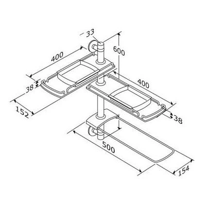- inkl. 2 Ablagen 40 cm, 1 Handtuchhalter 50 cm, 2 Schaleneinsätze, einzeln schwenkbar
