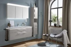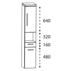 Puris Cool Line Hochschrank 40 x 30 x 164 cm mit 1 Schubkasten, 1 offenem Fach und 2 Türen, Anschlag rechts, Griff 292