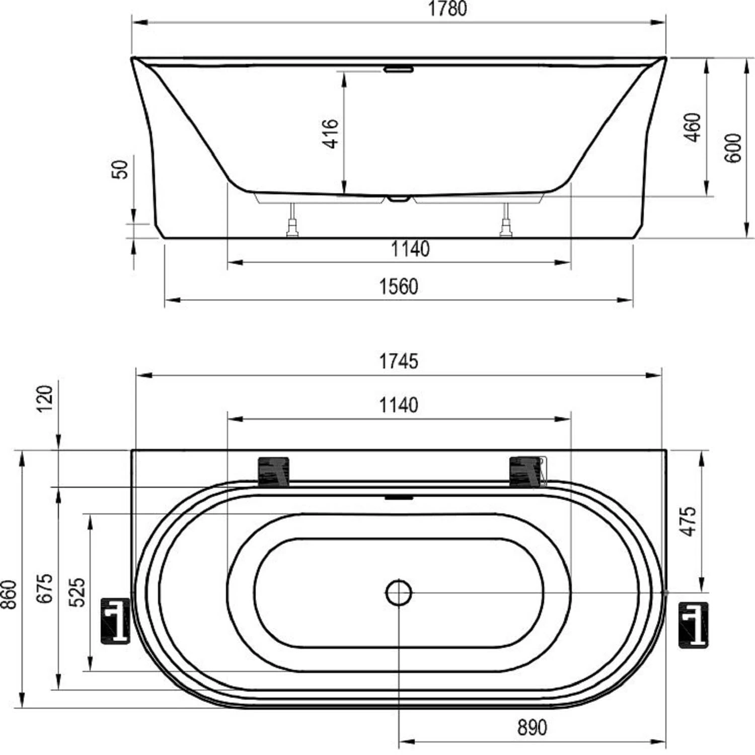 Das Badewannen-Ablaufset (d. h. Ăśberlauf, Siphon) und StĂĽtze (FĂĽĂźe) sind im Lieferumfang enthalten.