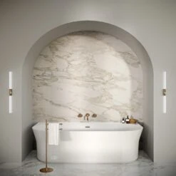 Die filigrane, weich geformte Acryl-Badewanne Ypsilon Wall bietet perfekte Entspannung. Die feinfühlig konzipierten, fast romantisch anmutenden Außenlinien laufen oben leicht seitlich auseinander und bieten zusammen mit der überdurchschnittlichen Wannenhöhe eine angenehme Stütze für Nacken und Kopf.