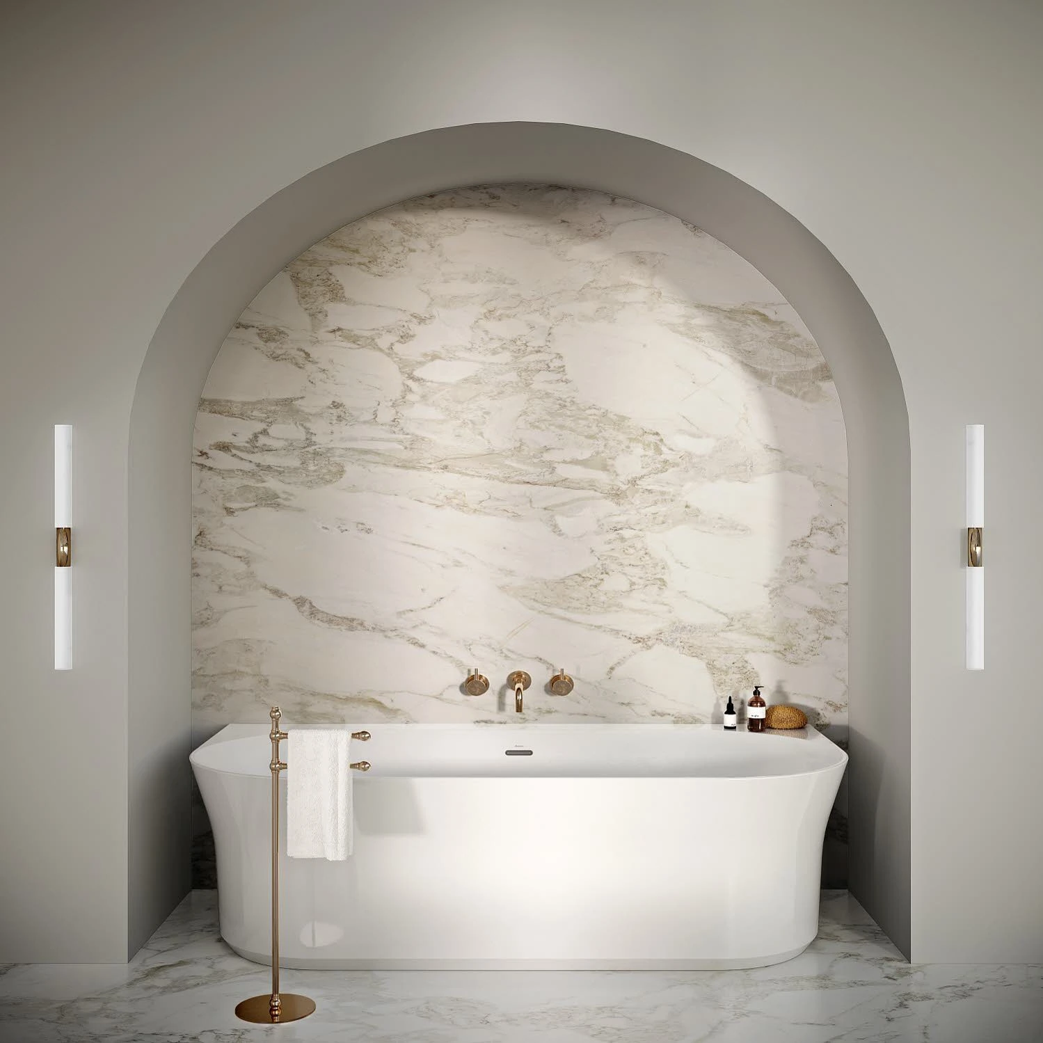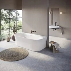 - halbfreistehende Badewanne (an der Wand)