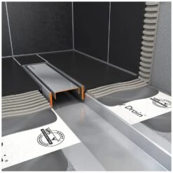 - Der Bodenablauf mit Rost, Ablauf senkrecht oder waagrecht sowie evtl. benötigte Unterbauelemente, DichtschlÀmme und Ansatzkleber sind separat zu bestellen.