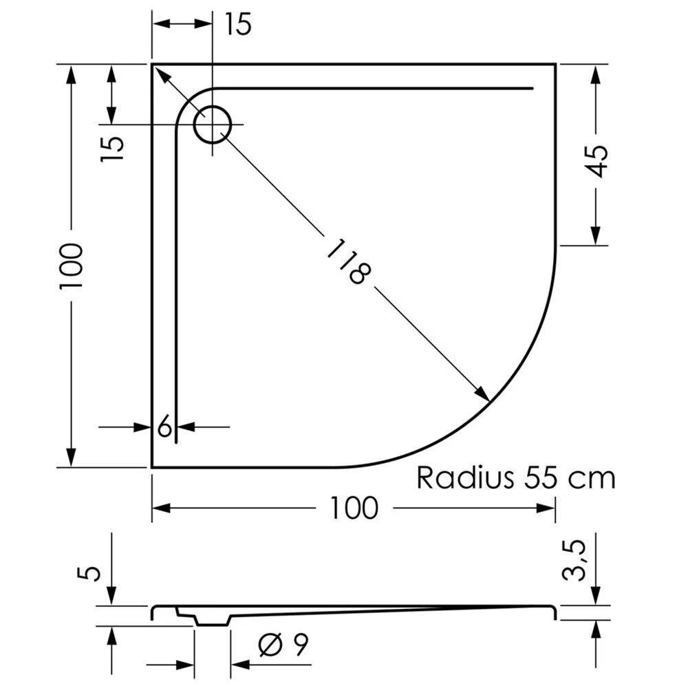 Repabad Bologna Viertelkreis-Duschwanne 100 x 100 cm