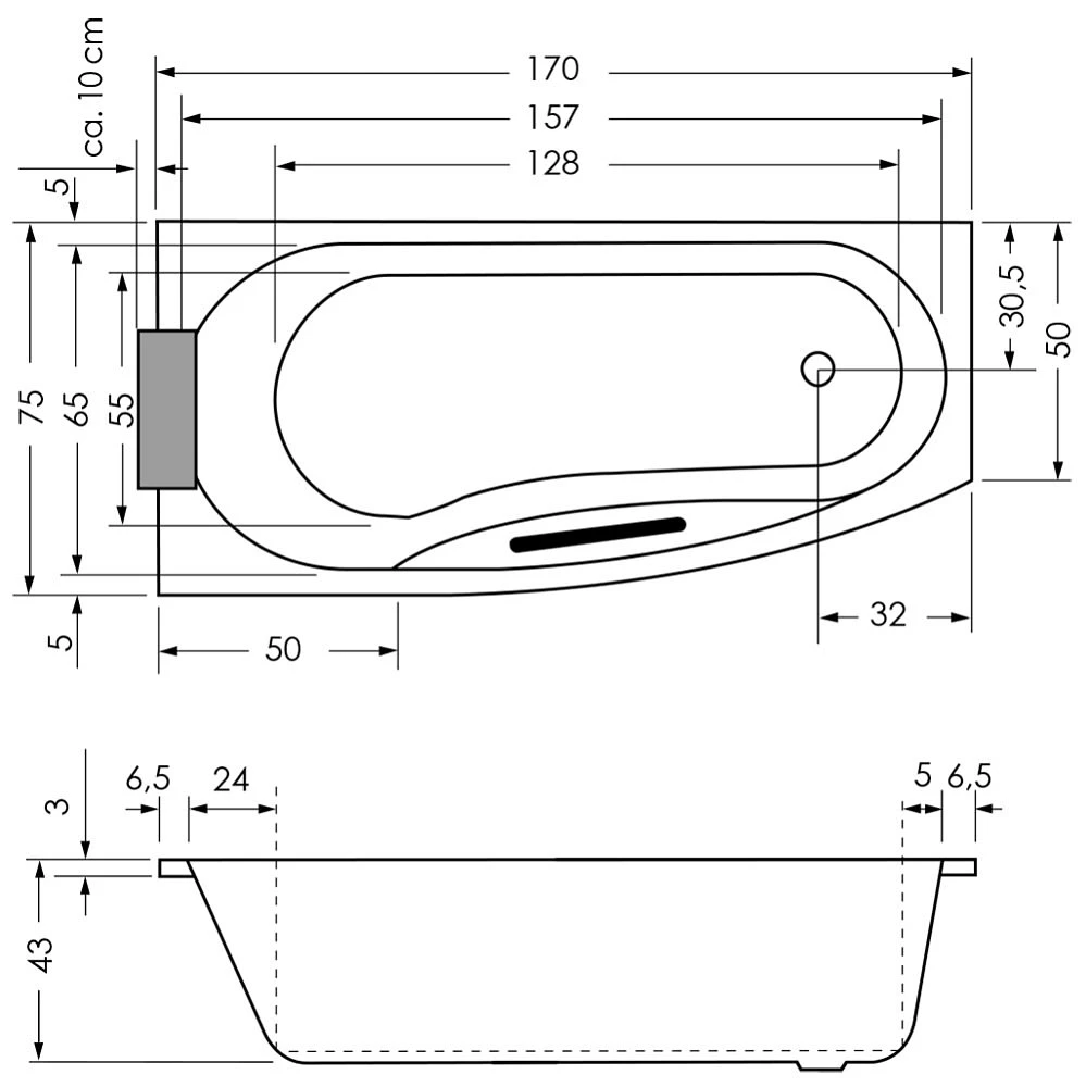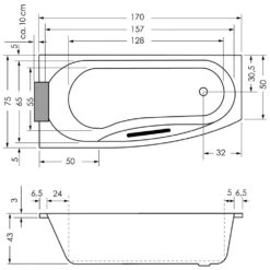 Repabad Kampen Raumspar-Badewanne 170 x 75 cm, AusfĂŒhrung rechts