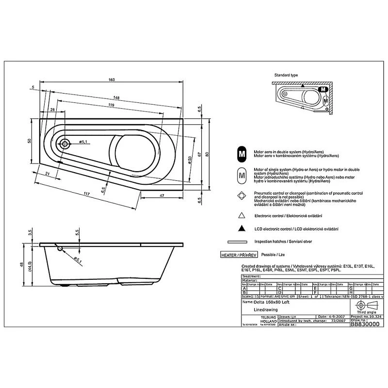 Riho Delta Raumspar-Badewanne 160 x 80 cm, links