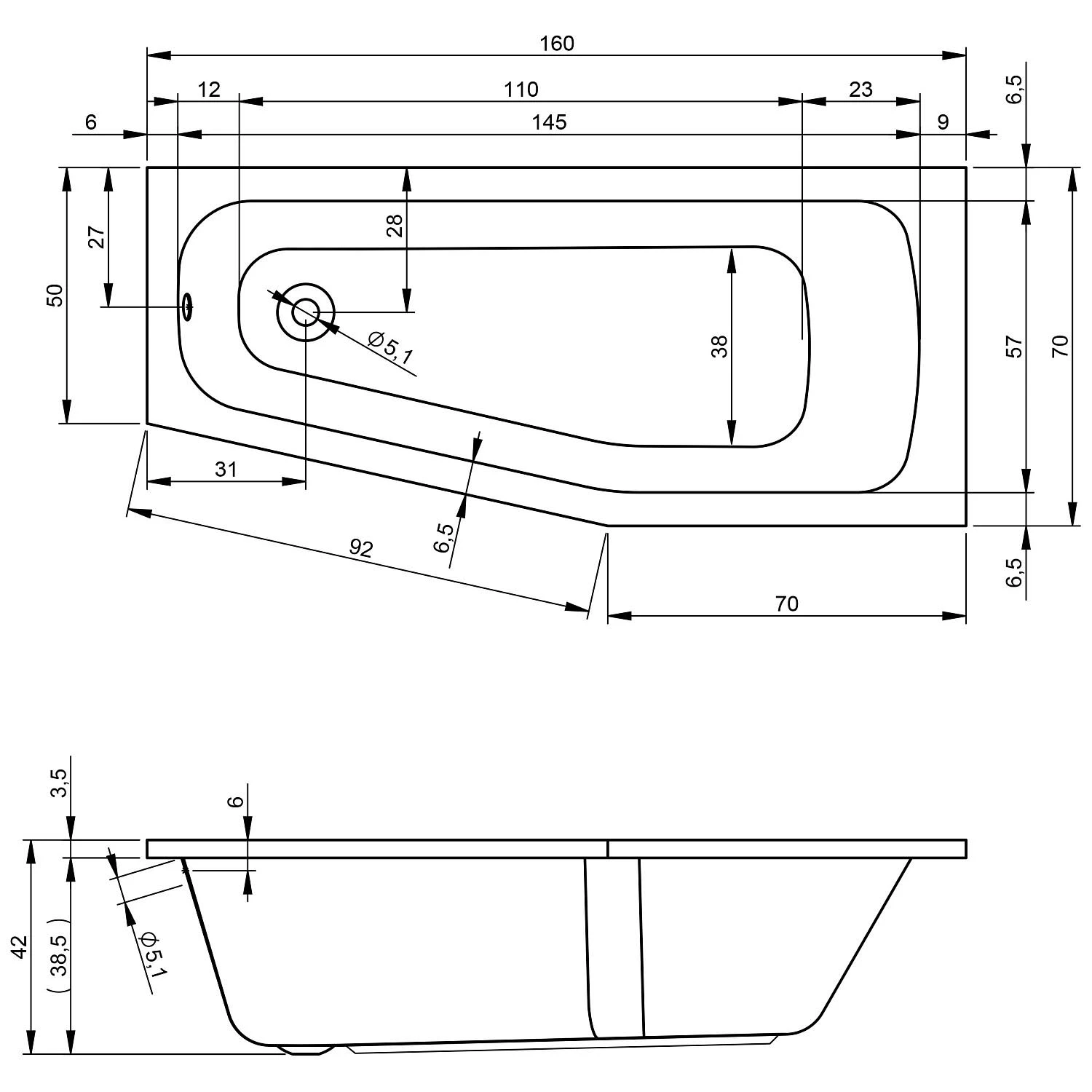 Riho Dola Raumspar-Badewanne 160 x 70 x 4 cm links
