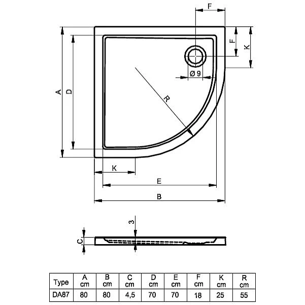 Riho Zürich Modell 278 Viertelkreis-Duschwanne 80 x 80 x 4,5 cm