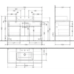 Waschtisch muss zum Waschtischunterbau mittig geplant werden. Siphon und Eckventile im Bereich der 270 mm einplanen.