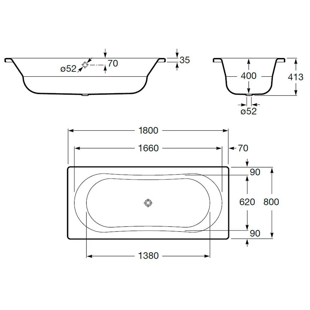 Steel Duo 180-2 Rechteck-Stahl-Körperformbadewanne 180 x 80 cm