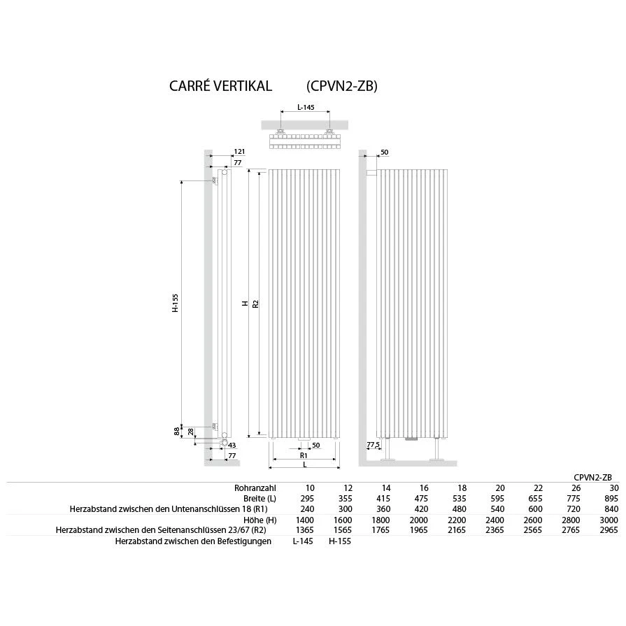Vasco Carré Vertikal Doppelt CPVN2-ZB Heizkörper 77,5 x 12,1 x 180 cm