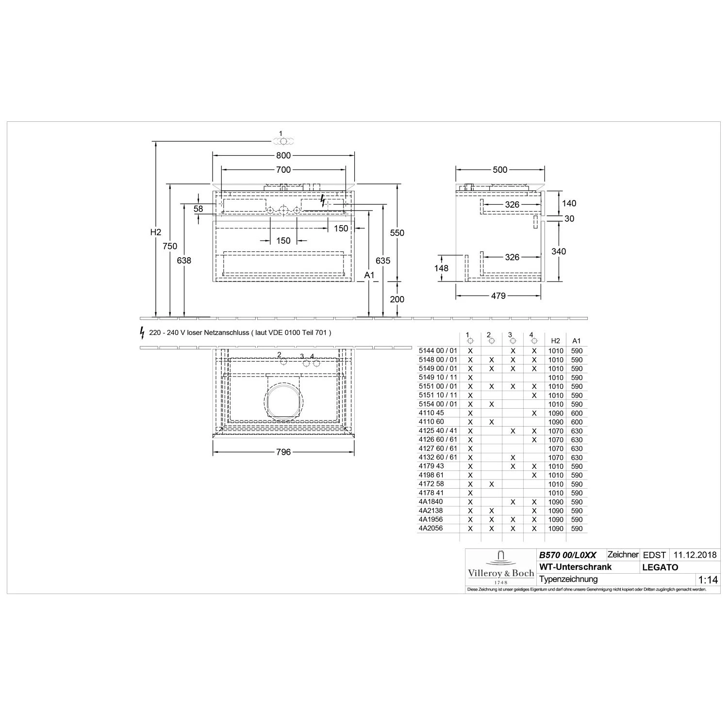 Villeroy & Boch Legato Waschtischunterschrank 80 cm mit 2 Auszügen und LED-Beleuchtung