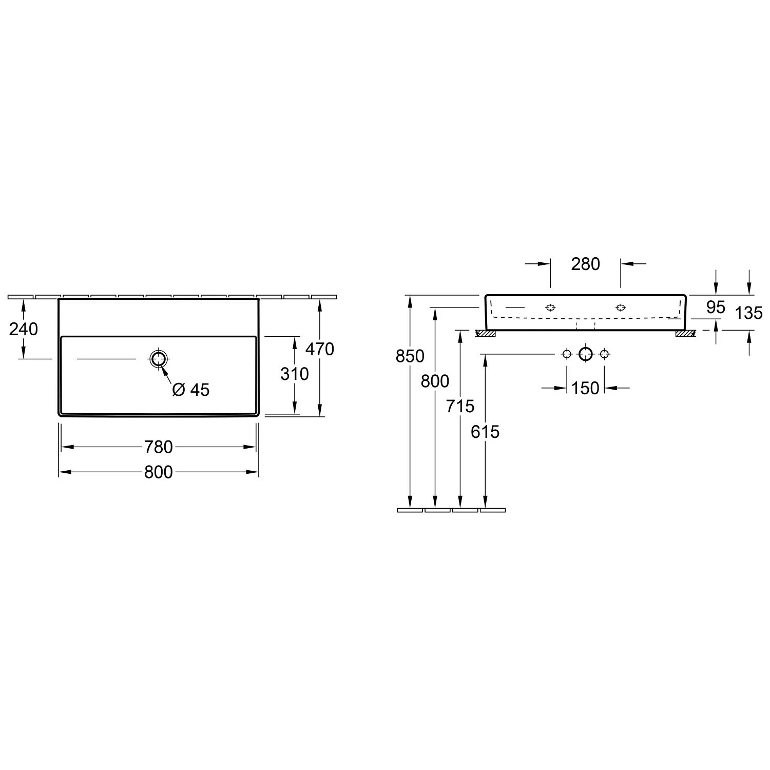 Villeroy & Boch Memento 2.0 Waschtisch 80 cm ohne Hahnloch, ohne Überlauf