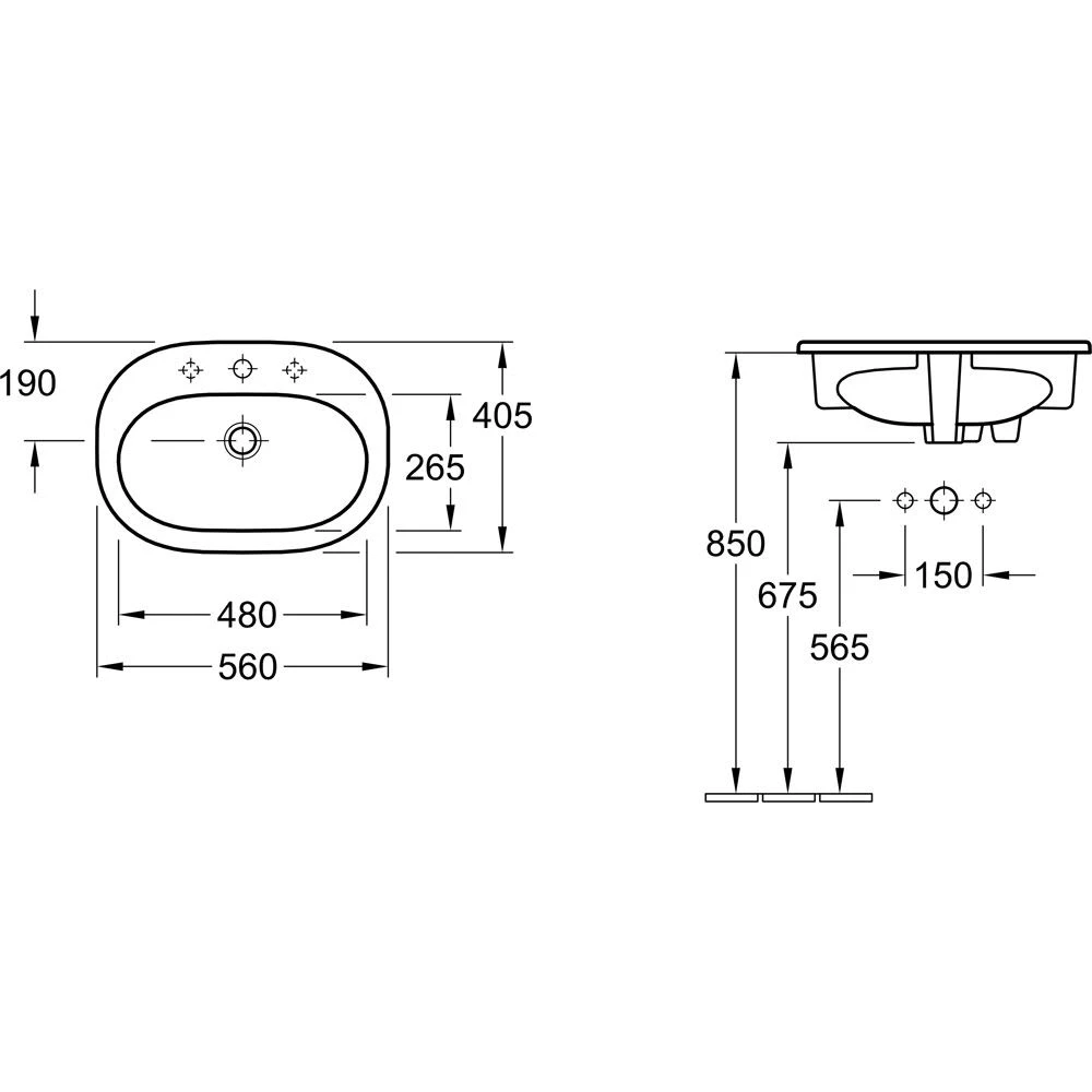 Villeroy & Boch O.novo Einbauwaschtisch 56 x 40,5 cm mit Überlauf