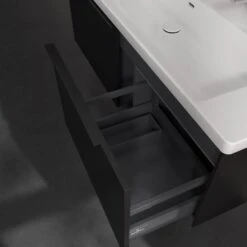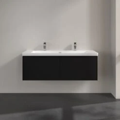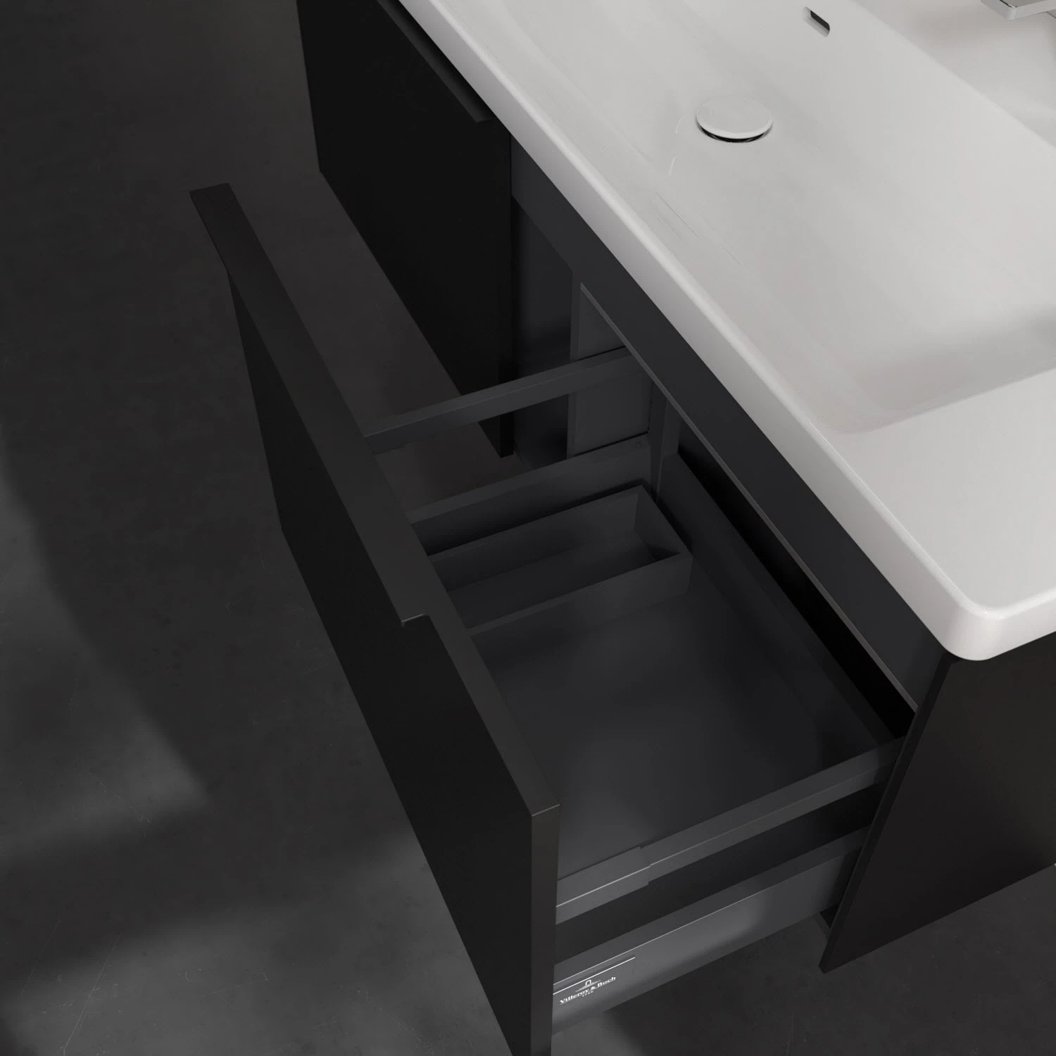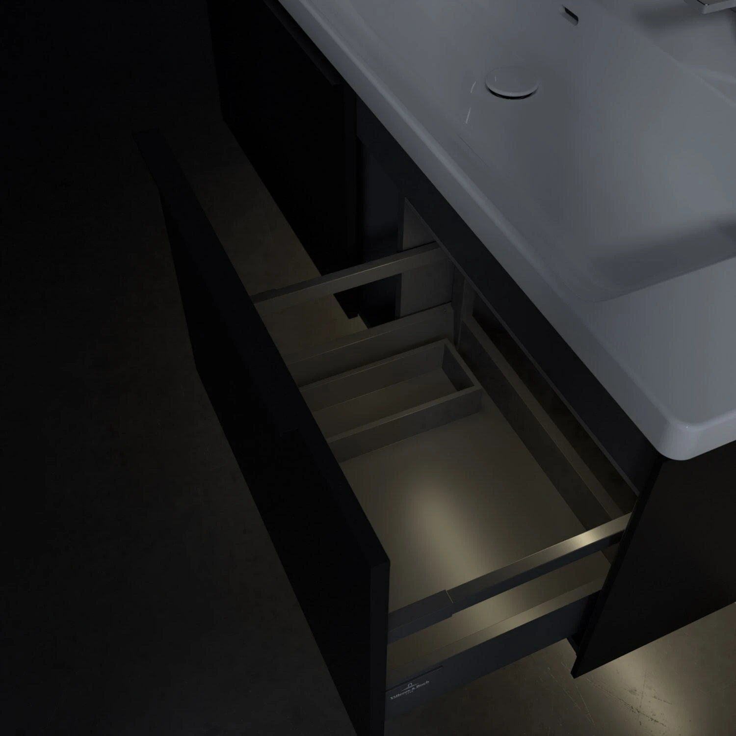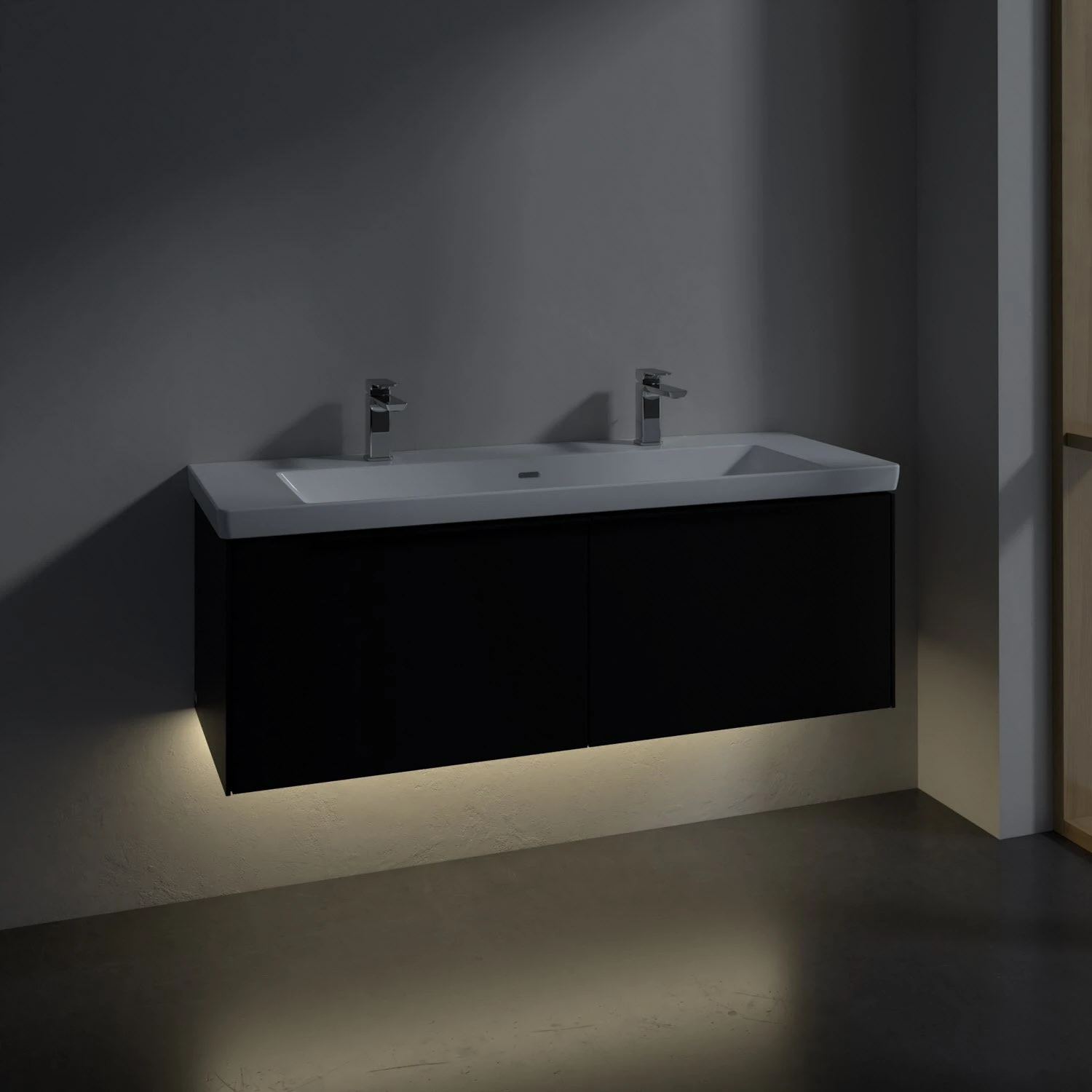 Villeroy & Boch Subway 3.0 Waschtischunterschrank 127,2 cm, 2 Auszüge, Griffe volcano black, mit LED-Licht