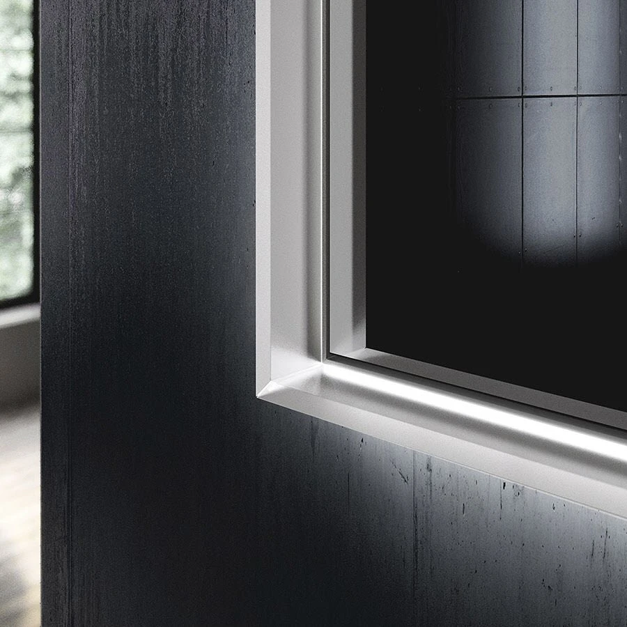 - AusfĂŒhrung: Aufputz Decor – umschlieĂt das neu entwickelte Kantenschutzprofil Ihren Spiegel dezent und sicher. Die EinrĂŒckung des Profils (25 mm) bewirkt dabei einen schwebenden Effekt des Spiegels und sorgt fĂŒr einen einzigartig minimalistischen Charakter vor der Wand – in der StandardausfĂŒhrung Aufputz Decor ist das innovative Kantenschutzprofil in Aluminium matt eloxiert gehalten