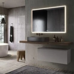 Zierath DEEP LED-Lichtspiegel 80 x 70 cm mit Easy-Touch-Display, Purist Aluminium