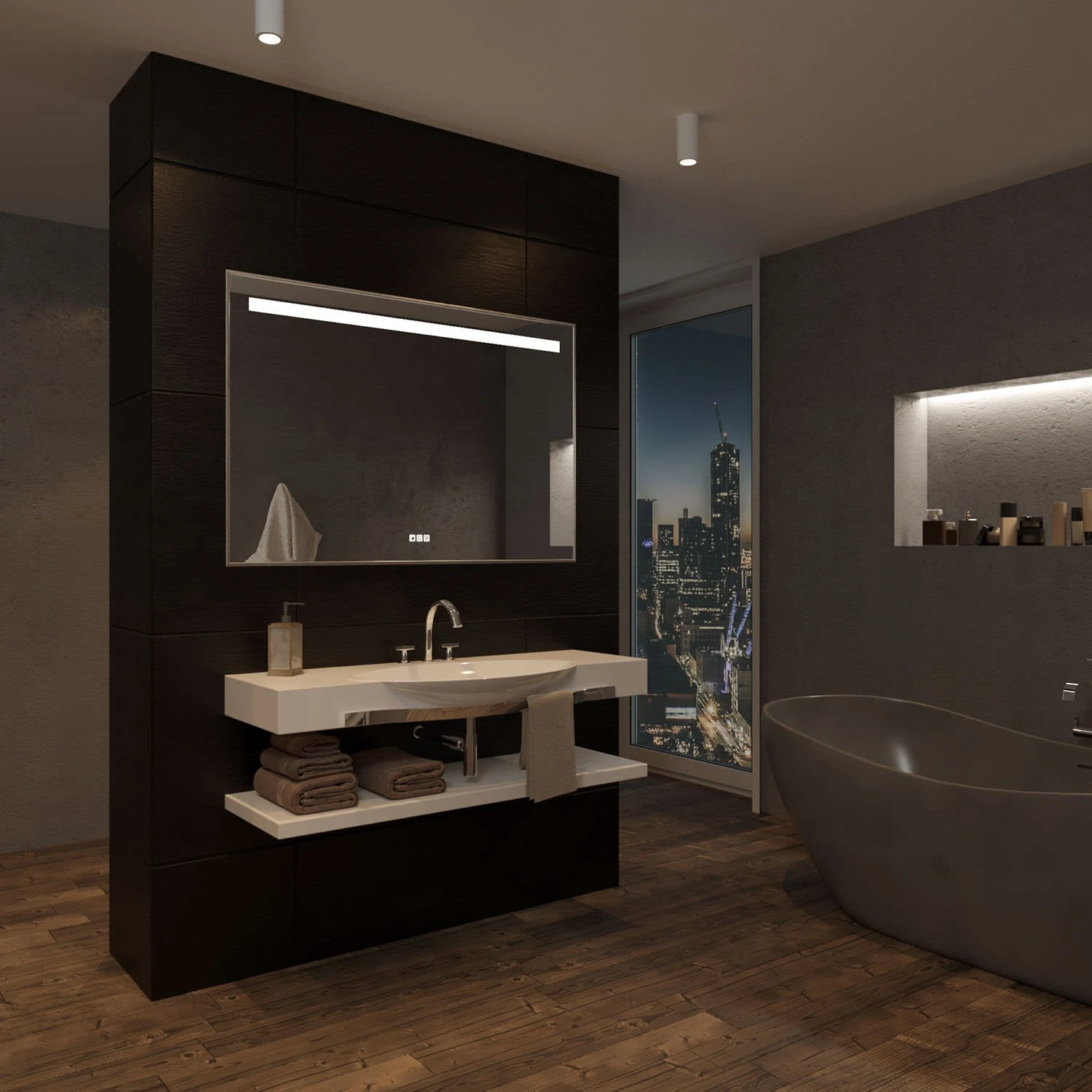 - Ausführung: Einbau – Dank des Einbaurahmens werden sie flächenbündig in die Wand eingelassen und fügen sich perfekt in moderne Badumgebungen ein. So wirken sie fast unsichtbar und sind ein echtes Design-Highlight. Hier ist allerdings keine Variante oder zusätzliche Beleuchtung wählbar.